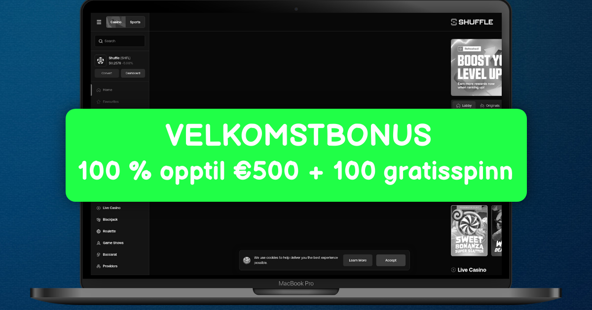 Shuffle Casino tilbyr krypto for innskudd og uttak i et online kasino for ekte penger. Plattformen støtter Bitcoin, Ethereum, USDT og flere alternativer for spillere i Norge.